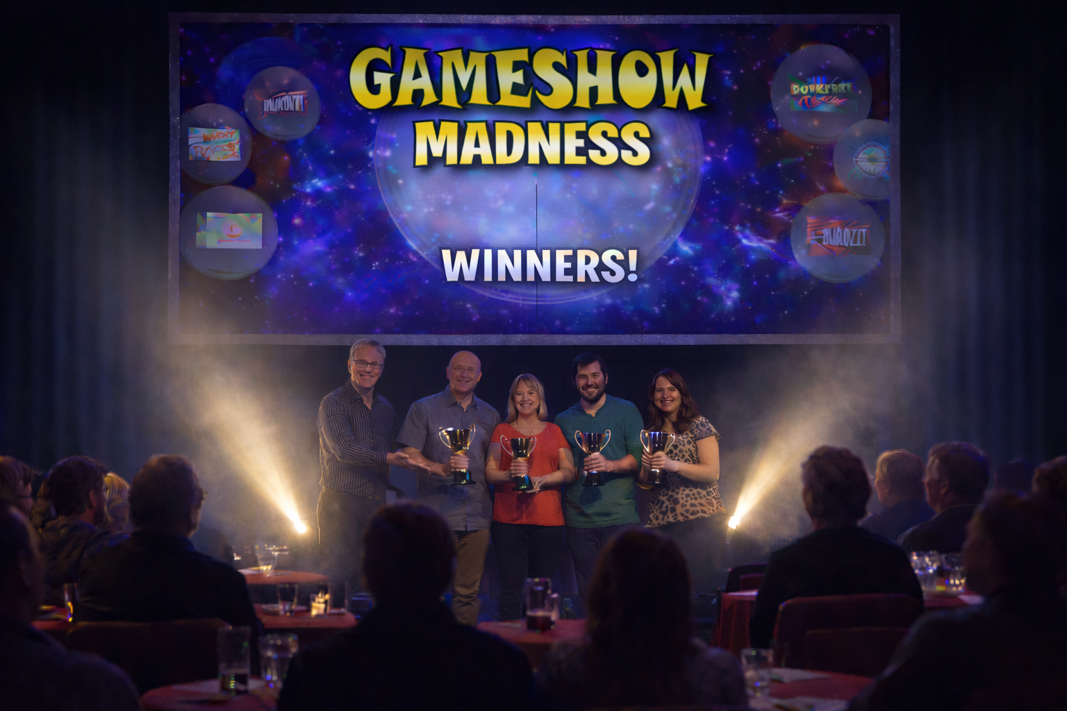 It all ends the way it should — winners up on stage, applause in the room, and prizes handed over to winning captains or teams. Whether it’s trophies, wine, chocolates or something a bit more substantial, there’s always a genuine moment at the end of the night!