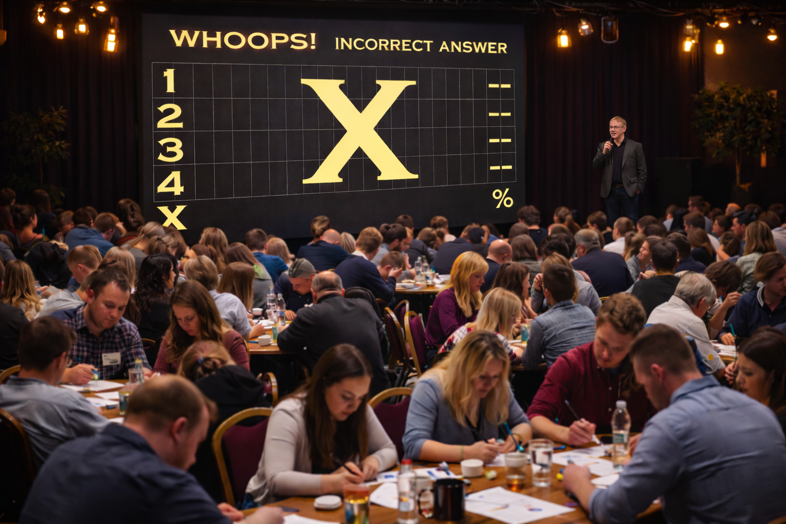 For example, in Squillionaire, the entire room plays a format normally focused on a single contestant. Teams compete simultaneously, each with their own lifelines — but here’s the twist: if one team chooses to use one, it affects everyone. The result is shared tension, laughter… and even the cries of derision, as a familiar format becomes a brilliantly unpredictable, whole-room experience!