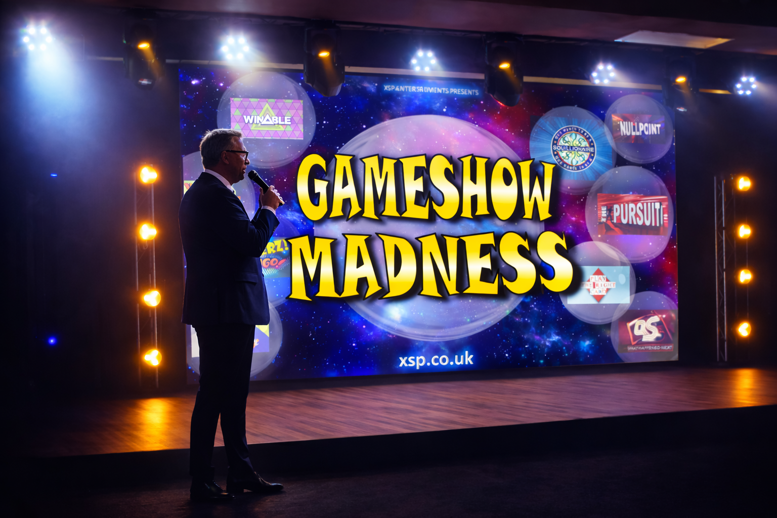 Each game is designed especially for the big screen, with familiar formats cleverly reimagined and given their own twist. Hosted by a professional compère, it captures the look and feel of television favourites while remaining completely unique. Keep scrolling… you may just recognise some of the games!