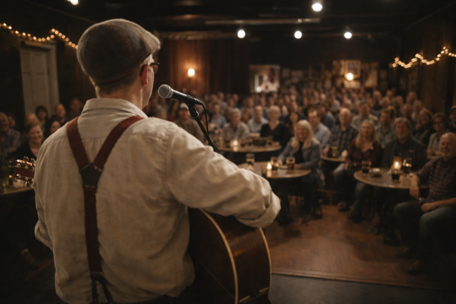 Alongside those chart-friendly favourites, Sidney dips into well-loved traditional material, from the timeless songwriting of Ewan MacColl to Irish and American folk classics that audiences instantly recognise. The result is a show that’s warm, engaging, and packed with songs people know and love — less “earnest dirge”, more smiles, choruses, and a good night out. Folk music, yes — but very much all folked up.